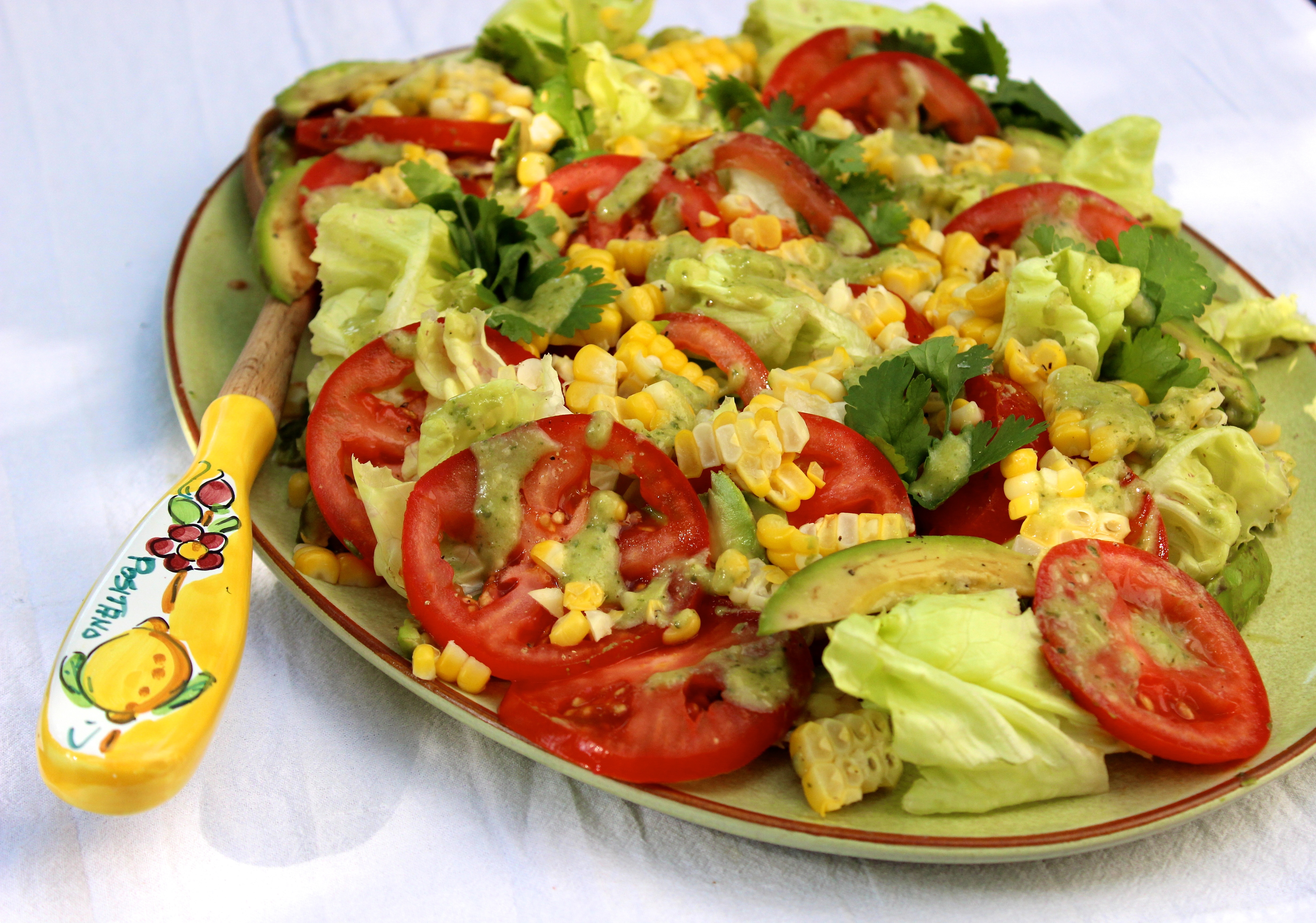 3 Responses to Avocado, Tomato, and Corn Salad with Creamy Tomatillo Vinaigrette