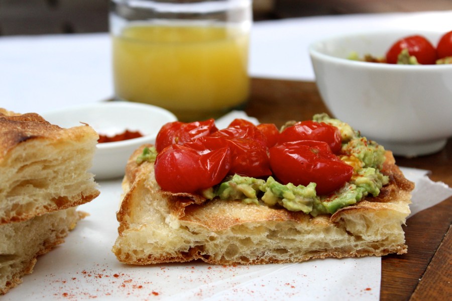 Blistered Cherry Tomato and Avocado Smash Toasts