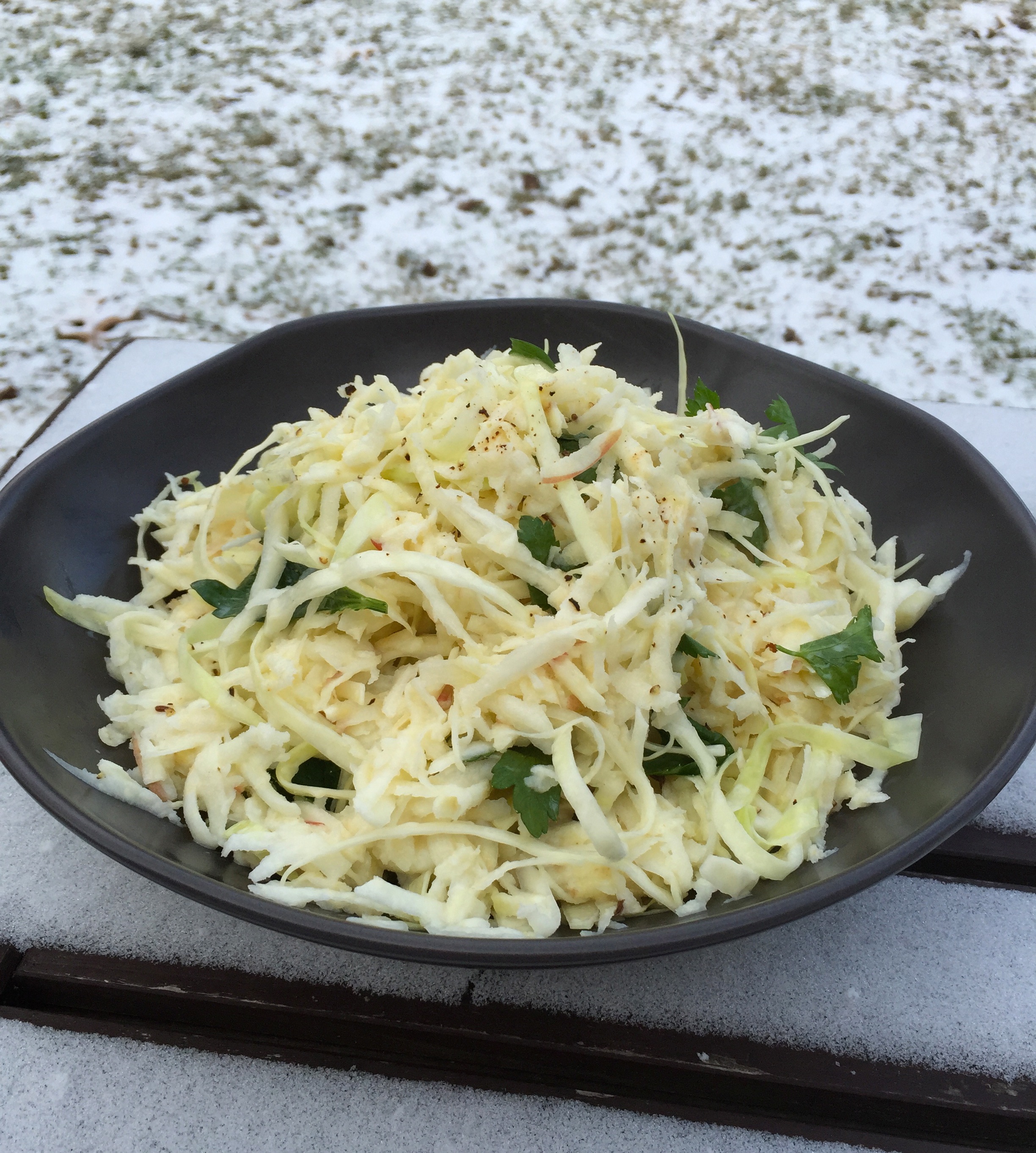 - Add the parsley to the slaw and toss again. Finish with black pepper and serve.