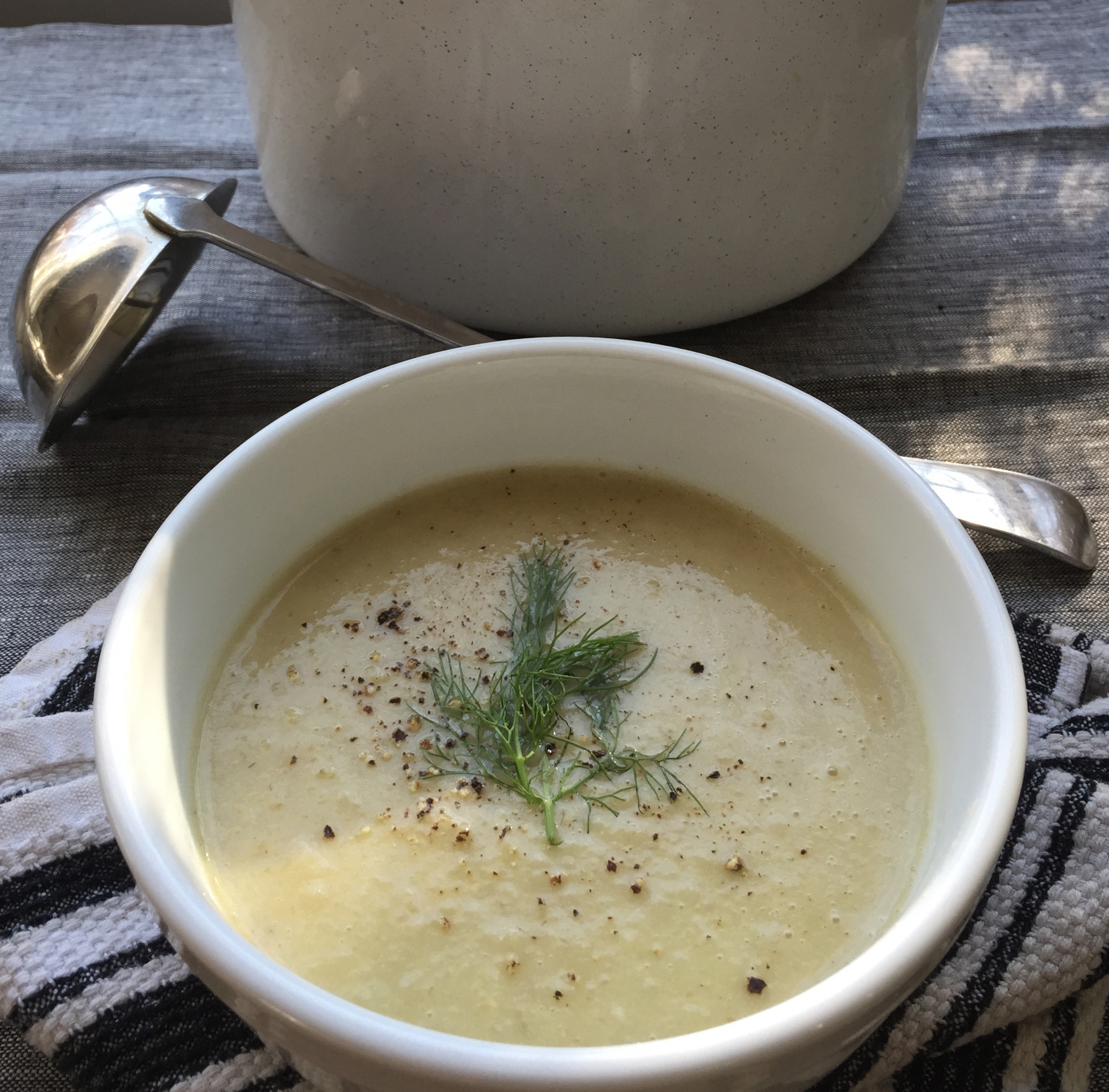 - Let the soup cool slightly before adding, in batches, to a blender. (If you try to do this while the soup is piping hot, you will wind up with soup exploded all over your kitchen. I’ve been there.) Puree until smooth then pour back into a clean soup pot. Add the milk, season to taste with salt and warm, without boiling. Serve in soup bowls topped with reserved fennel fronds and plenty of black pepper over top.
